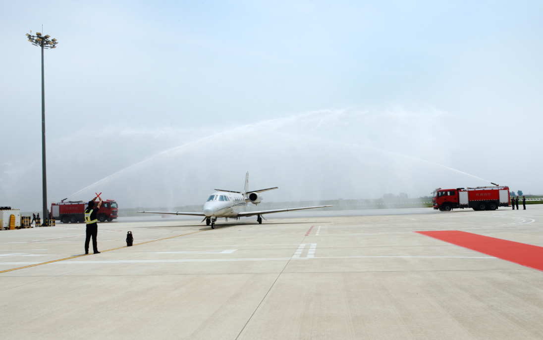 5月17日上午,隨著塔臺發(fā)出明確指令,一架“獎狀C560”平穩(wěn)降落在安陽紅旗渠機(jī)場,并接受“水門禮”。這是中國民用航空飛行校驗(yàn)中心的校驗(yàn)專用飛機(jī),它的到來意味著安陽紅旗渠機(jī)場“第一飛”順利完成,校飛工作正式開始,標(biāo)志著安陽紅旗渠機(jī)場從地面建設(shè)向開放運(yùn)行的邁進(jìn)。