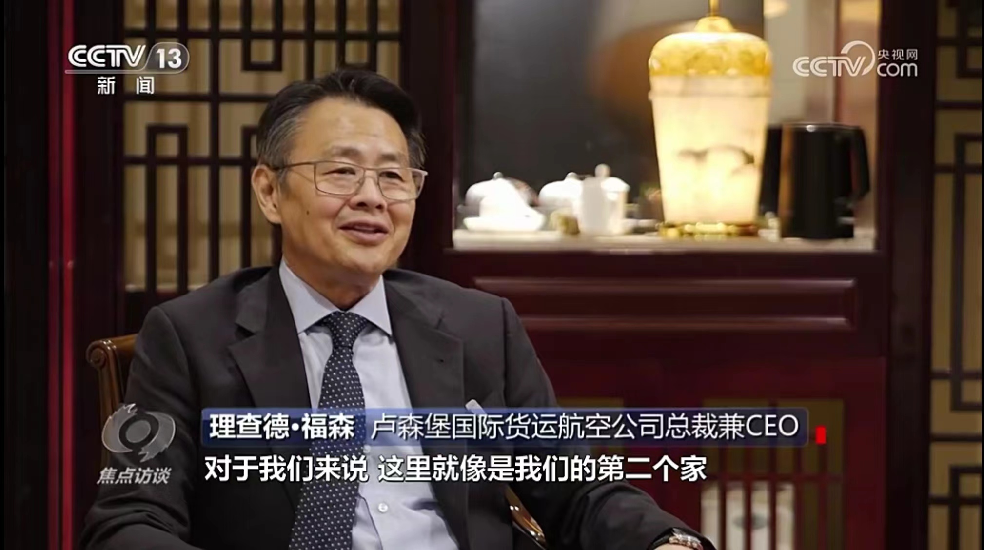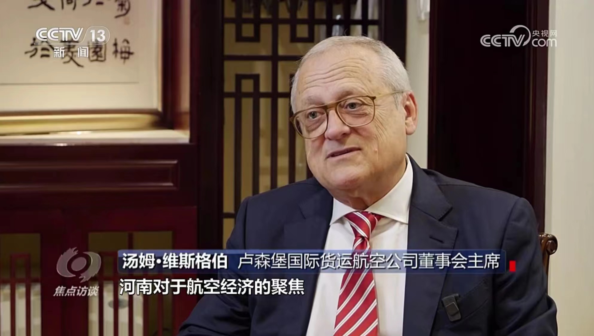 10月11日,央視《焦點(diǎn)訪談》播發(fā)系列報道“絲路同行”第一集——雙向奔赴的繁榮之路。報道中說,“一帶一路”倡議的提出,讓河南明確了突破區(qū)位限制、向藍(lán)天要效益的開放思路。通過采訪河南航投集團(tuán)黨委書記、董事長張明超和盧森堡貨航董事會主席湯姆·維斯格伯、總裁兼CEO理查德·福森,報道回顧了鄭盧“空中絲綢之路”十年探索實(shí)踐和豫盧之間的友好情誼。節(jié)目評論道:“(河南航投與盧森堡貨航)之間早已超越了生意伙伴這一簡單的關(guān)系,多年的合作讓鄭州與盧森堡兩個航空樞紐之間的互聯(lián)互通真正實(shí)現(xiàn)了彼此雙方互利共贏和美美與共。這一切都在詮釋著‘一帶一路’倡議的核心要義?!?