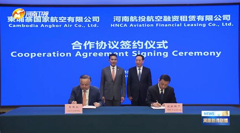 11月2日上午,河南航投航空融資租賃有限公司(以下簡稱航投租賃)與柬埔寨國家航空公司簽署融資租賃合作協(xié)議,開展跨境飛機(jī)租賃業(yè)務(wù)。省委常委、常務(wù)副省長孫守剛與柬埔寨民航國務(wù)秘書處大臣兼柬埔寨國家航空公司董事會主席毛哈萬納共同見證協(xié)議簽署。