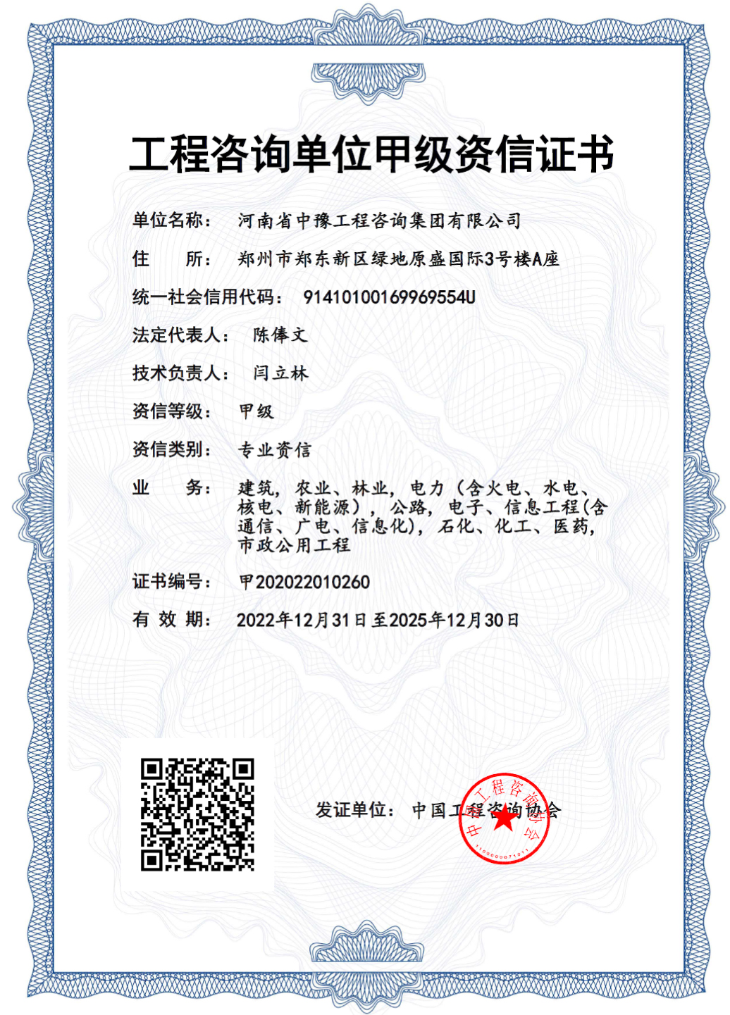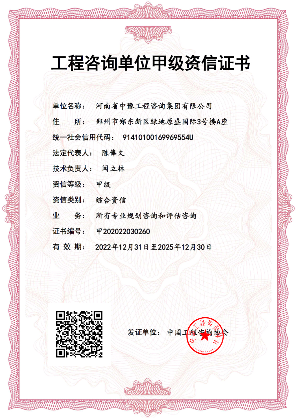 工程咨詢資信等級是衡量工程咨詢企業(yè)綜合實力的重要標志,也是工程咨詢企業(yè)發(fā)展的重要基石。甲級綜合資信可以作為所有專業(yè)規(guī)劃咨詢和評估咨詢業(yè)務(wù)能力的參考。目前,中豫咨詢集團已獲得工程咨詢單位甲級綜合資信和7個甲級專業(yè)資信,企業(yè)綜合實力邁上新臺階。