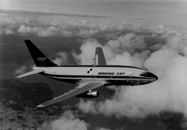 圖:1967年4月9日,第一架波音737-100飛機(jī)首飛。圖片來自波音