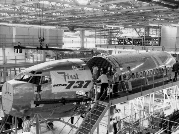 圖:1966年11月,首架737進(jìn)行噴涂 圖片來自《西雅圖時(shí)報(bào)》