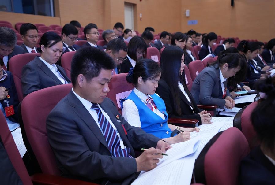 集團(tuán)黨委書記、董事長張明超代表集團(tuán)黨委向大會作報告,與會代表在現(xiàn)場認(rèn)真聆聽。