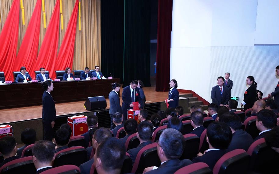 按照大會選舉辦法,代表們正在投票選舉集團(tuán)第一屆委員會。