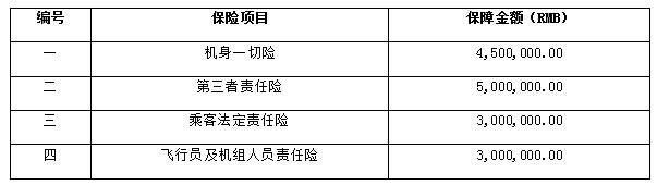 1.3本次采購范圍包括:兩架西銳SR-20G6飛機(jī)的機(jī)身一切險(xiǎn)、第三者責(zé)任險(xiǎn)、乘客法定責(zé)任險(xiǎn)(每架飛機(jī)投保2名人員),飛行員及機(jī)組人員責(zé)任險(xiǎn)(每架飛機(jī)投保2名人員),每架飛機(jī)保險(xiǎn)需求具體情況如下表:
